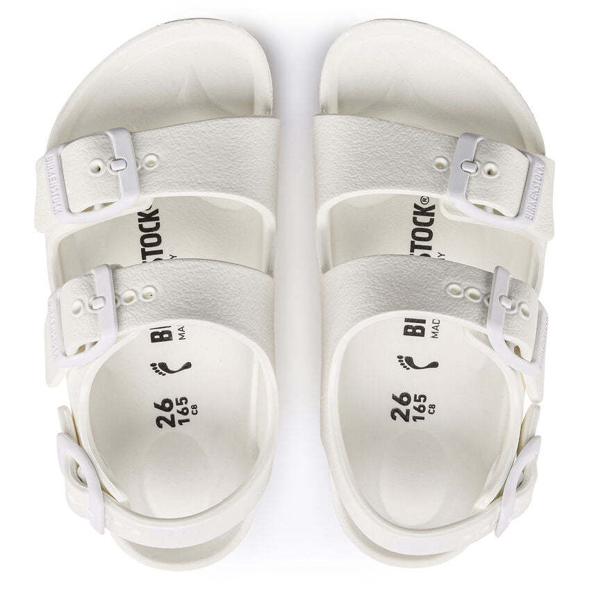 Milano - a classic back-strap sandal with functional style for kids. Modeled on the cork original, this back-strap sandal is made from ultra lightweight and highly flexible EVA. These sandals are shock absorbing, waterproof, and skin-friendly. Wear them at the beach, in the backyard, or by the pool. Sandals for all-day play!