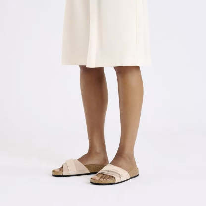 - Footbed: Solid cork with suede liner