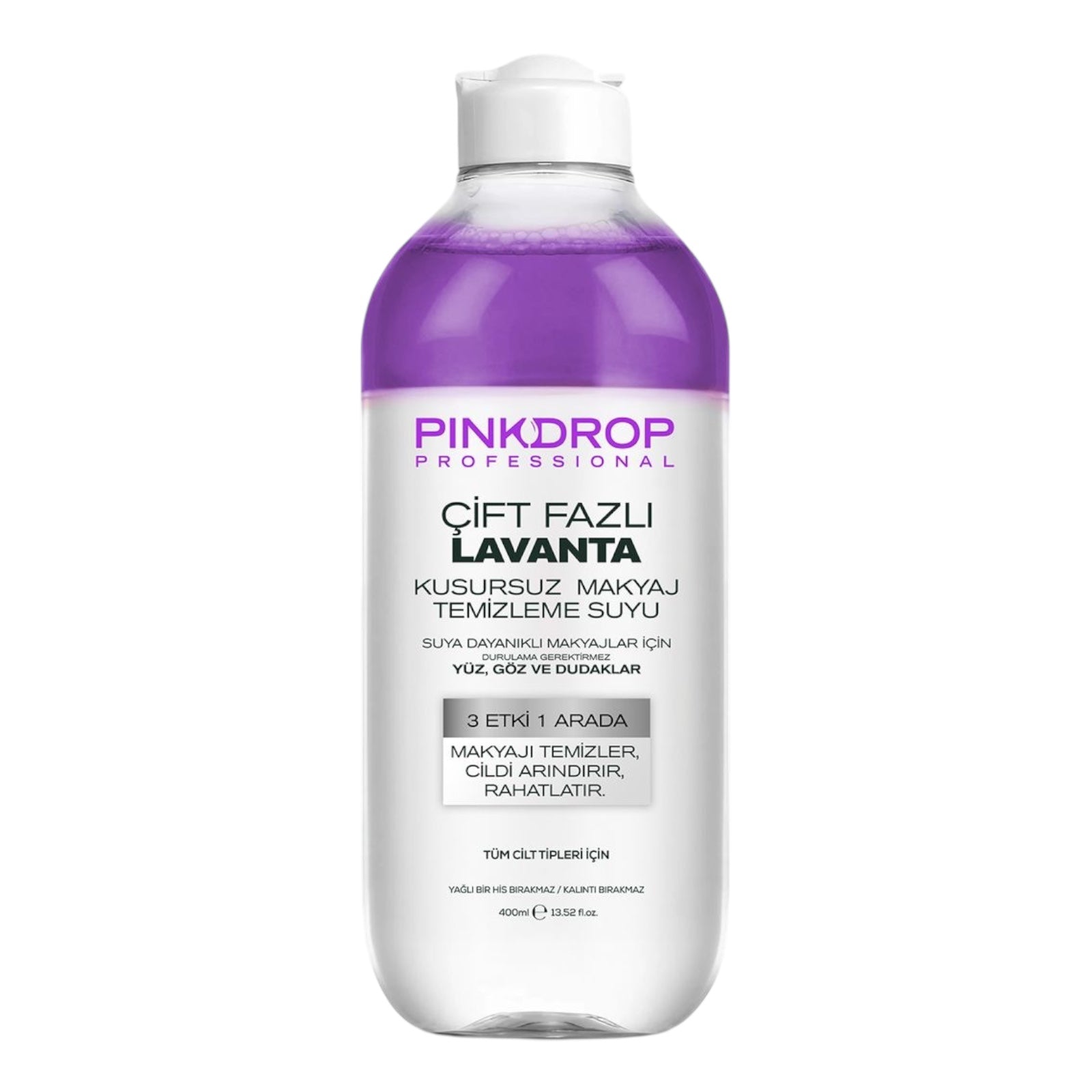Îngrijește-ți pielea sensibilă cu Pinkdrop 3-in-1 Apă Micelară Bifazică, formulată cu ulei de lavandă calmant și colagen pentru un ten curat, hidratat și vizibil mai ferm. Îndepărtează delicat machiajul de pe față, ochi și buze – inclusiv cel rezistent la apă – fără frecare și fără clătire.